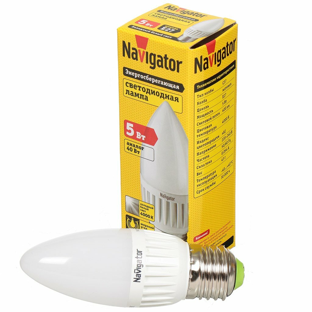 Светодиодная лампа Navigator "Свеча" 5Вт 400Лм Е27 4000К