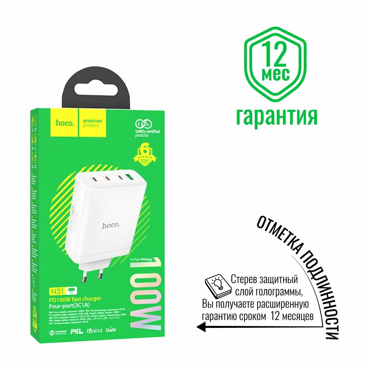 Сетевое зар. устр. Hoco N31 GaN 1USB/3USB-С 100W белое