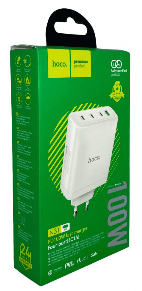Ниже Вы можете прочитать отзывы на Сетевое зарядное устройство Hoco N31 USB + 3 Type-C, GAN PD 100W, QC 3.0, белый, ознакомится с подробными характеристиками, посмотреть интересные обзоры и фотографии на Сетевое зарядное устройство Hoco N31 USB + 3 Type-C, GAN PD 100W, QC 3.0, белый.