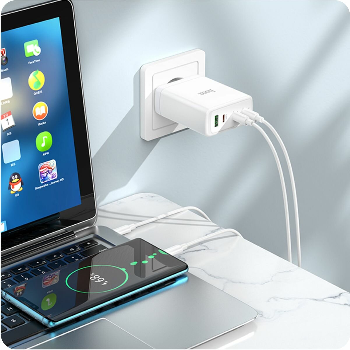Сетевое зарядное устройство Hoco N31 Leader PD100W 3*Type-C, USB 18W, поддержка протоколов быстрой зарядки, белое