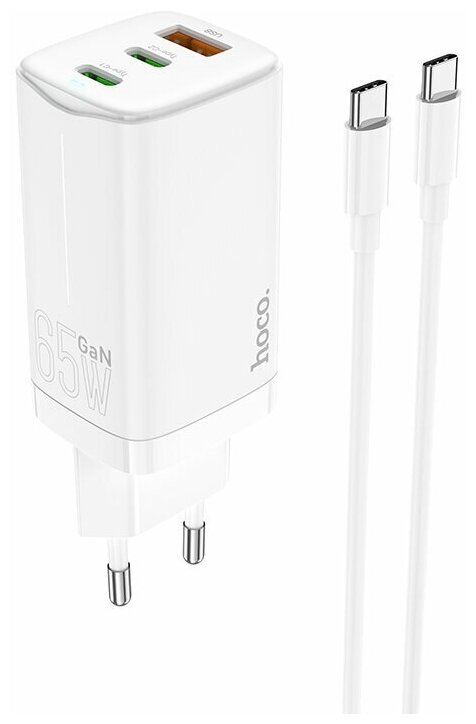 Зарядное устройство СЗУ Блок 65W 2Type-C+USB Hoco N16 + кабель Type-C Type-C 1m белый