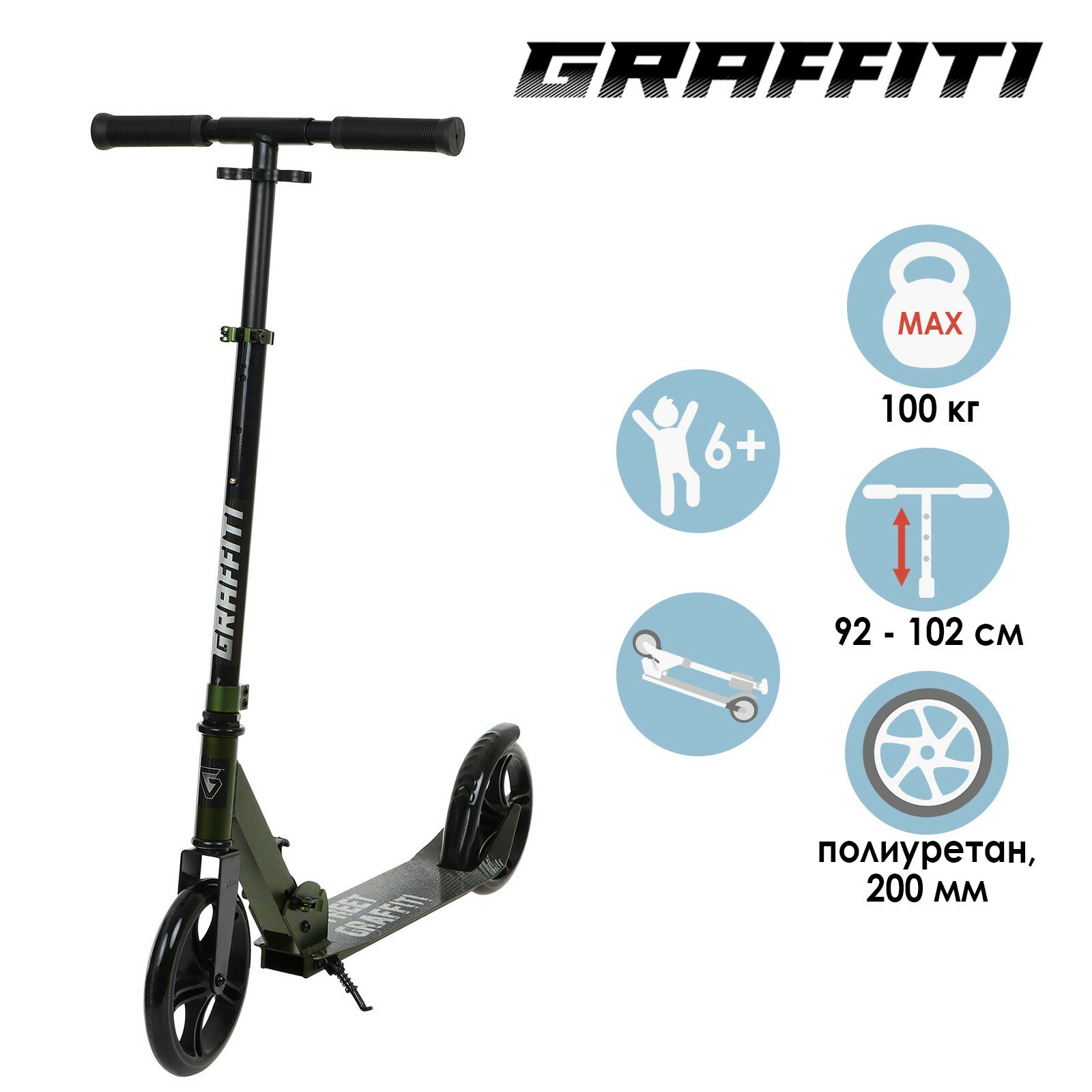 GRAFFITI Самокат городской GRAFFITI, складной, колёса PU 200, 86A, ABEC 9, подножка, цвет хаки