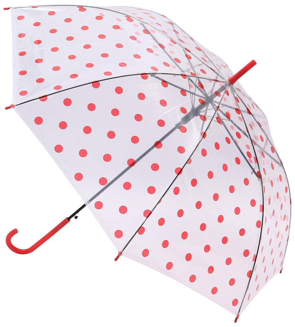 Зонт-трость, ТРИ слона, 1629-C-02, женский прозрачный, красный,прозрачный интересное: