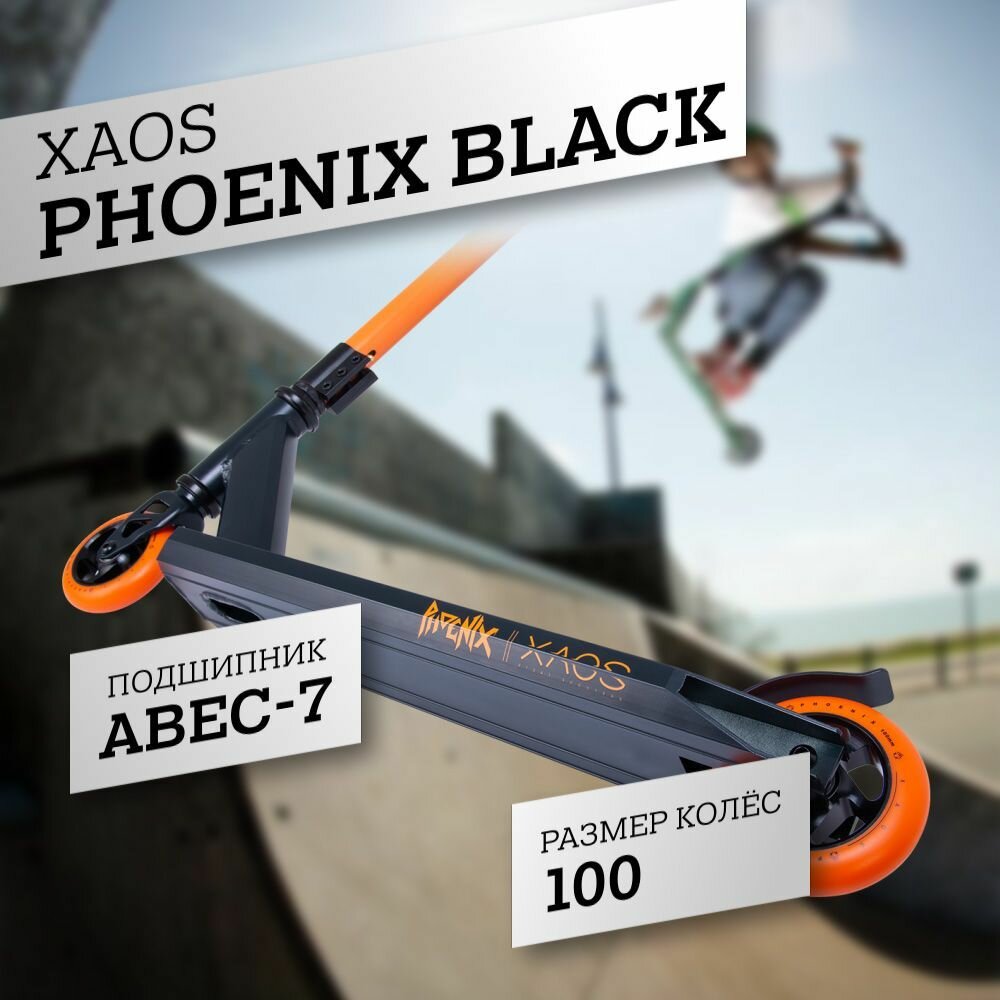 Самокат трюковый для детей и подростков Phoenix Black 100 мм. XAOS. УТ-00018557