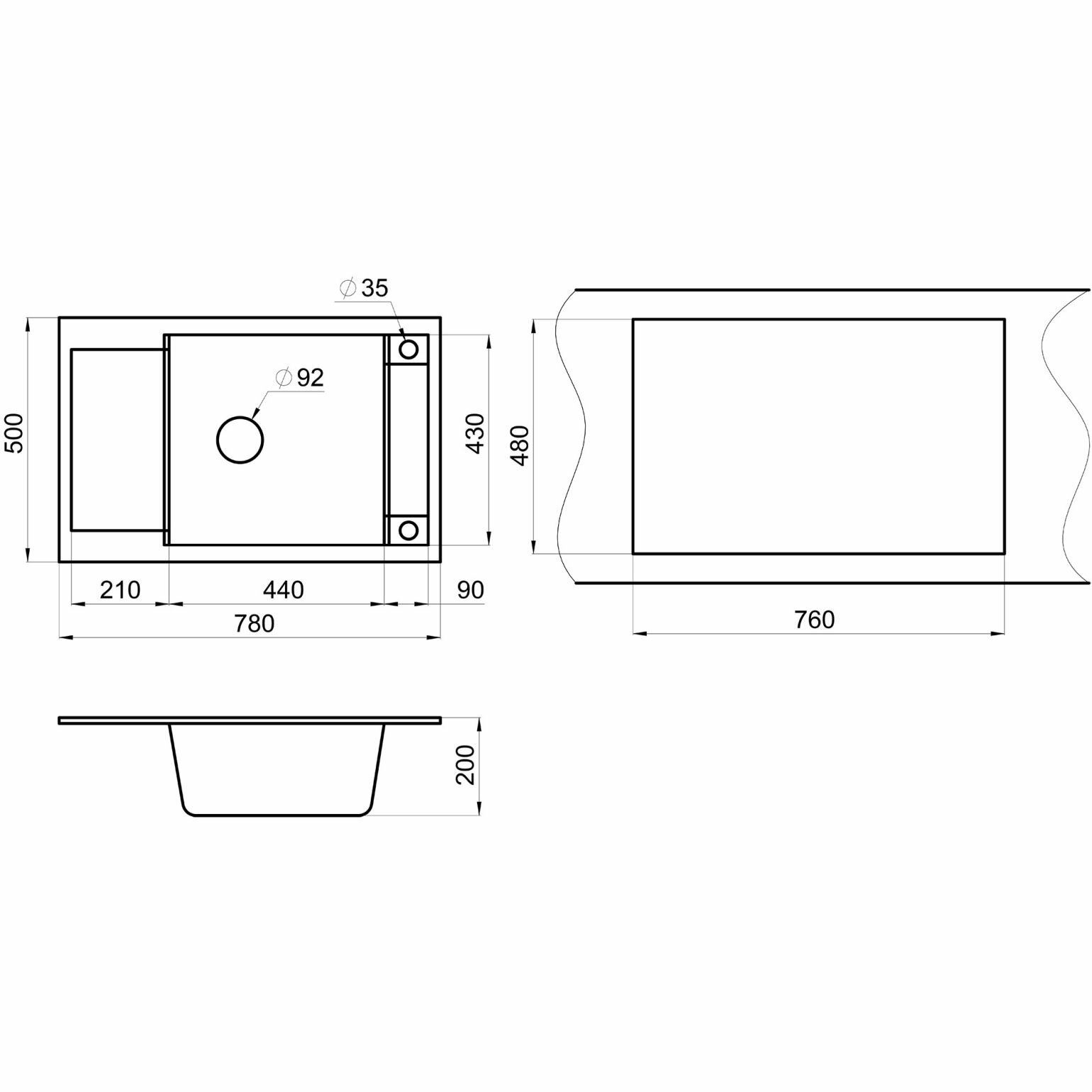 Купить Кухонная мойка кварцевая Granula GR-7806 прямоугольная с крылом, врезная, чаша 440x430, цвет графит (7806bg)