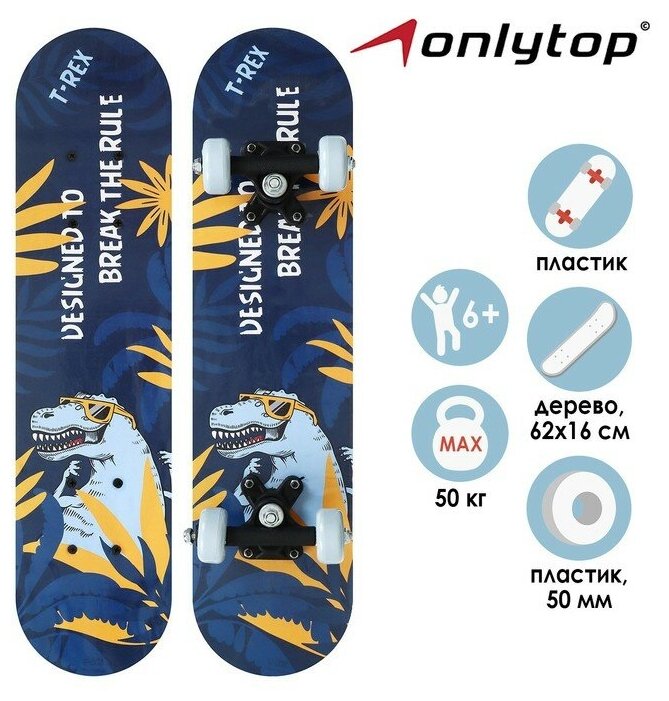 ONLYTOP Скейтборд подростковый T-REX 62 х 16 см, колёса PVC 50 мм, пластиковая подвеска