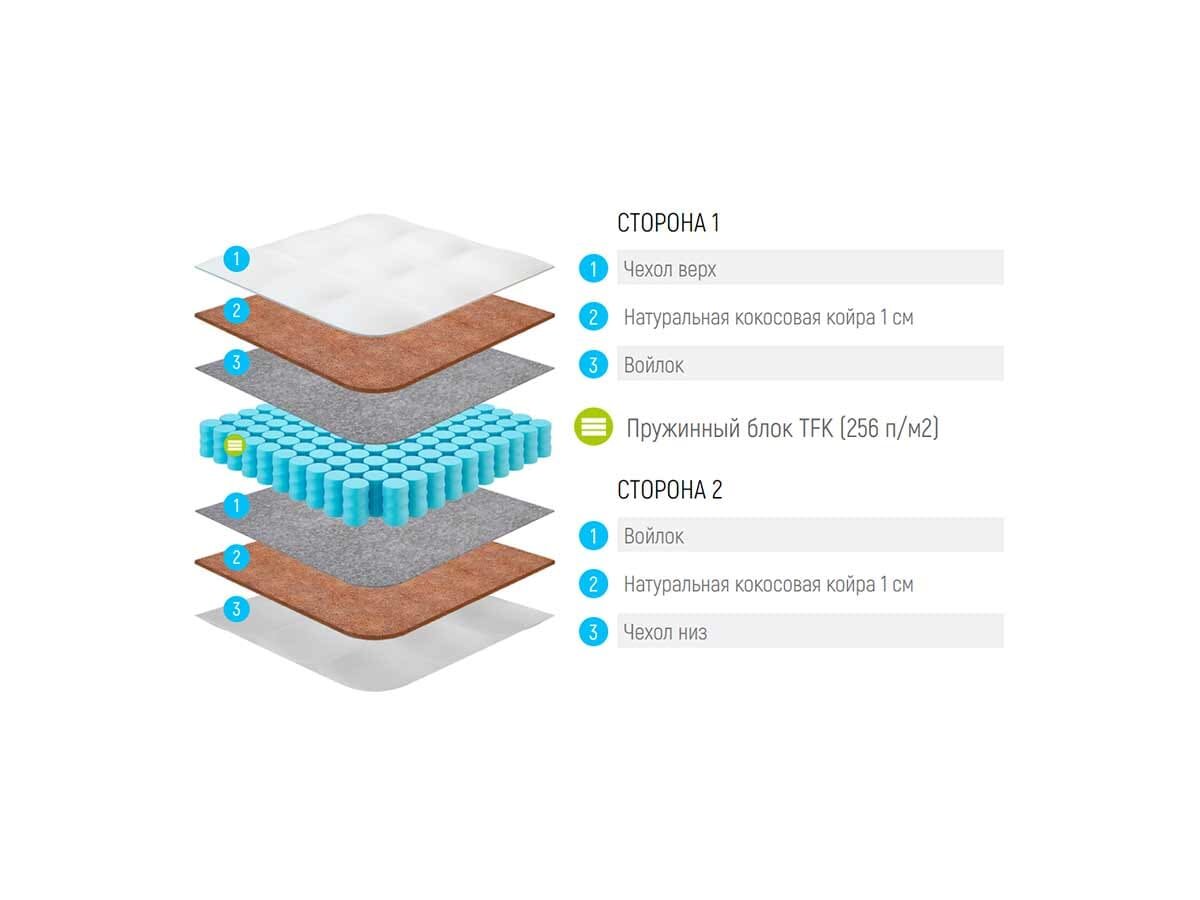 матрас идеально вписался в указанный размер. показался сначала мне немного жестковатым из-за кокосовой прослойки. но когда прилег после него на матрас от орматек, то орматековский матрас без кокосовой прослойки показался излишне мягким и хлипким. |