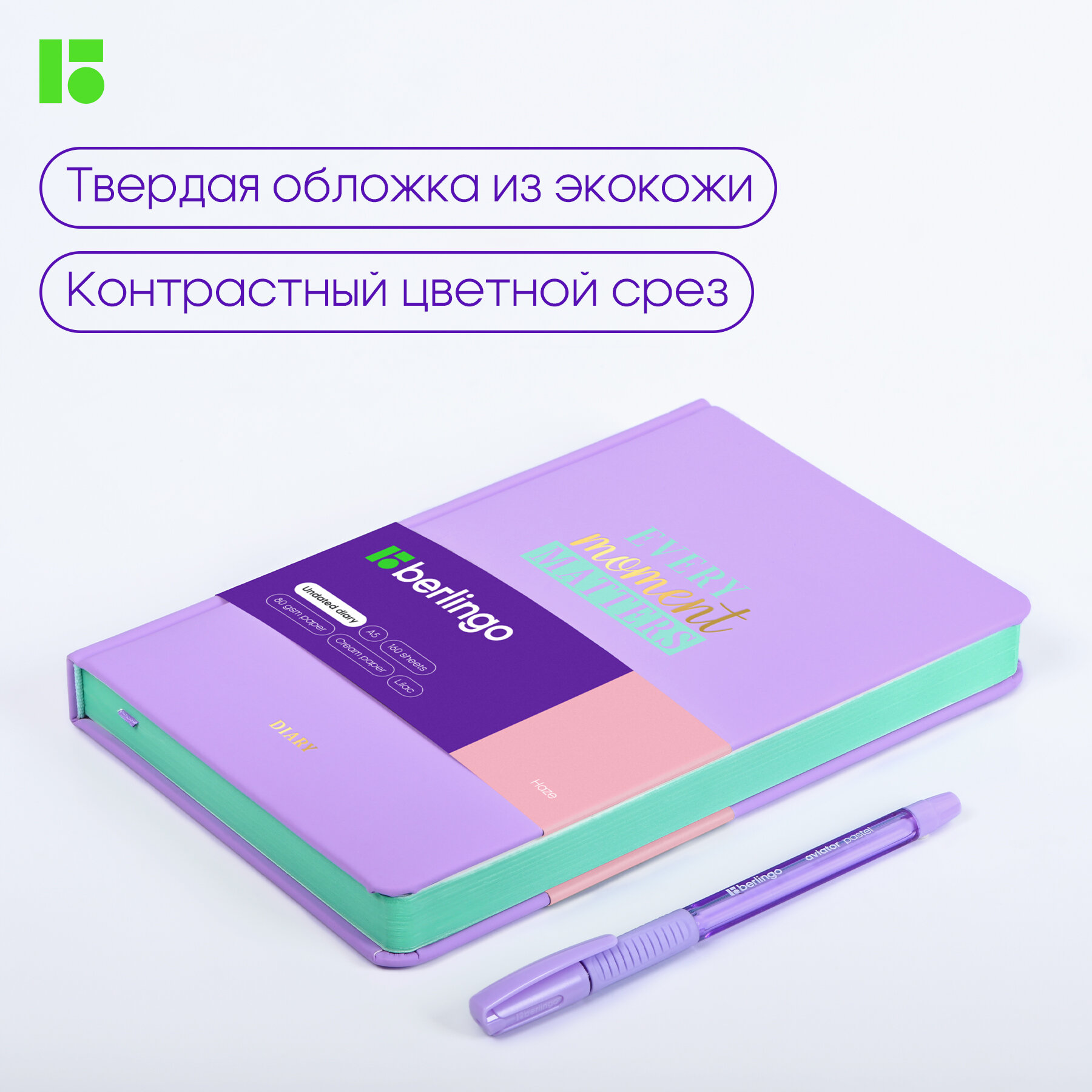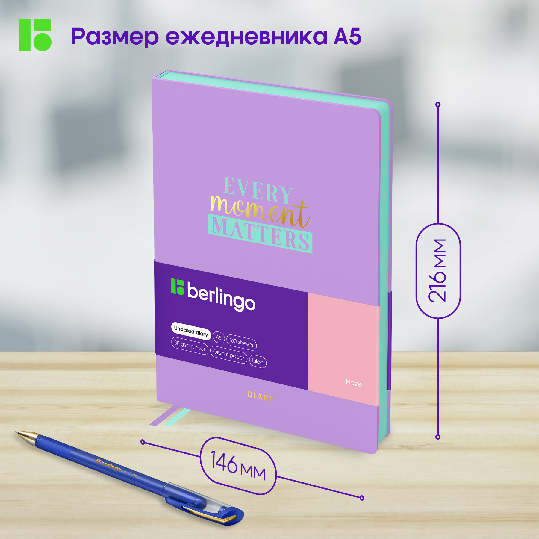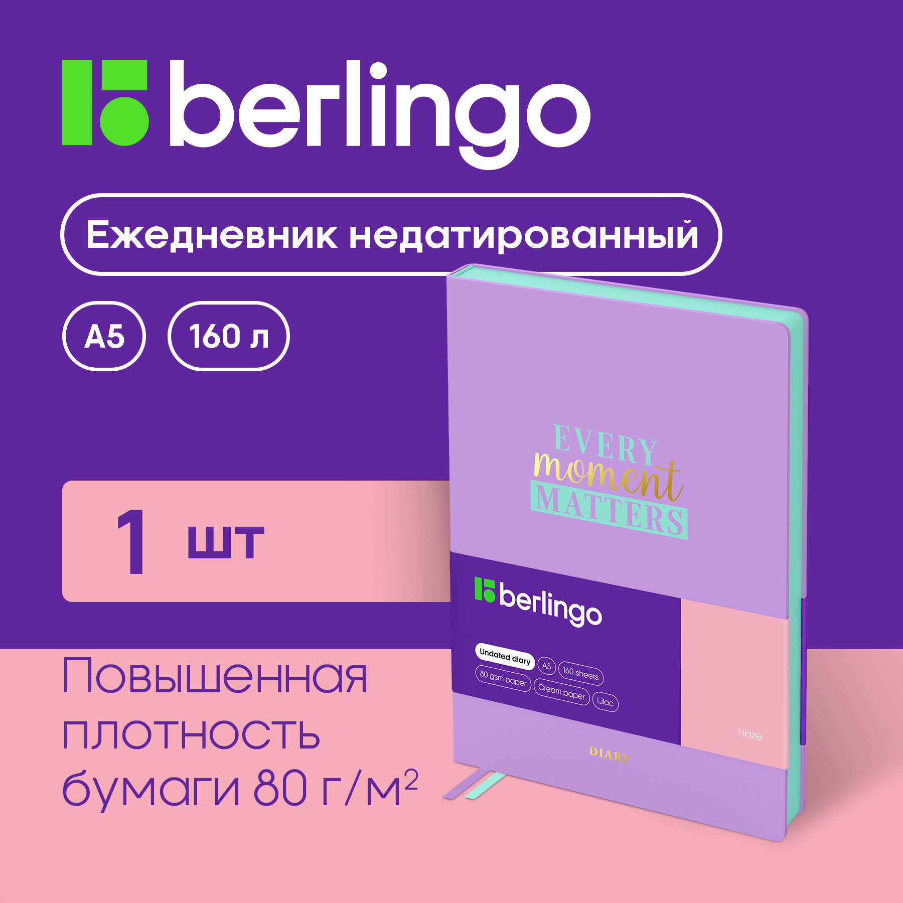 Ежедневник Berlingo Haze недатированный на 2022-2023 год, искусственная кожа, А5, 160 листов, сиреневый, цвет бумаги тонированный