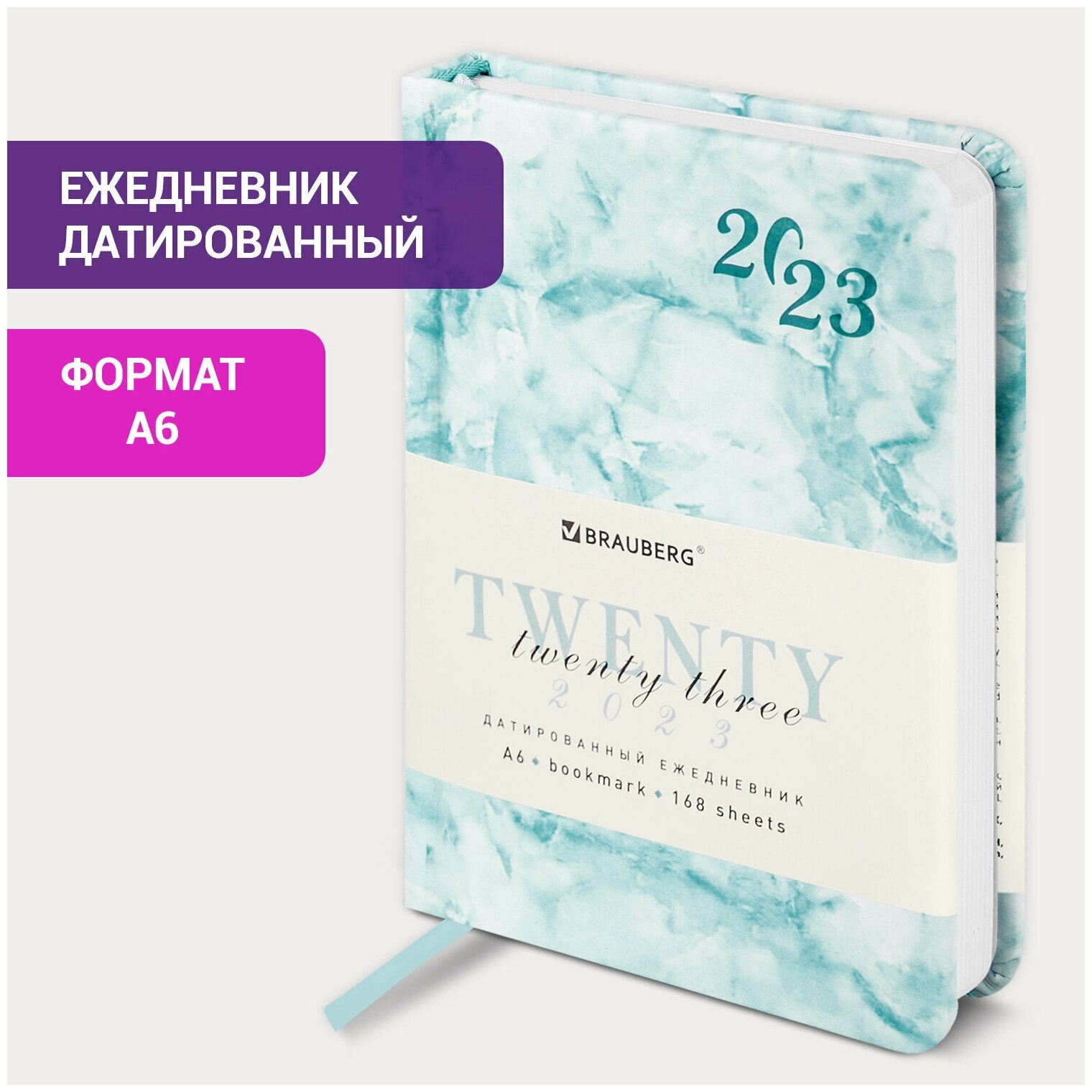 Ежедневник датированный 2023 малый формат 100x150 мм А6, BRAUBERG "Marble", под кожу, синий, 113919 интересное: