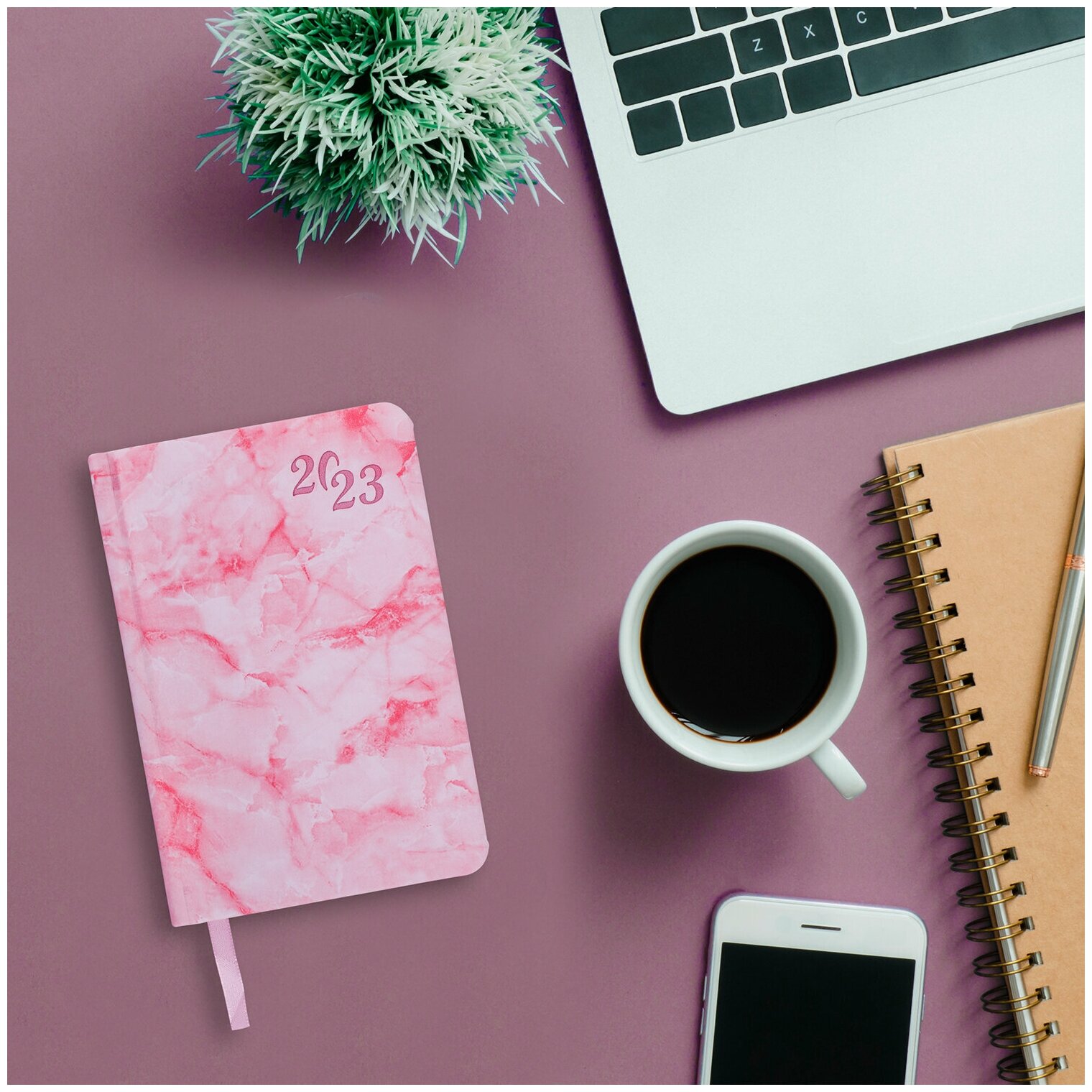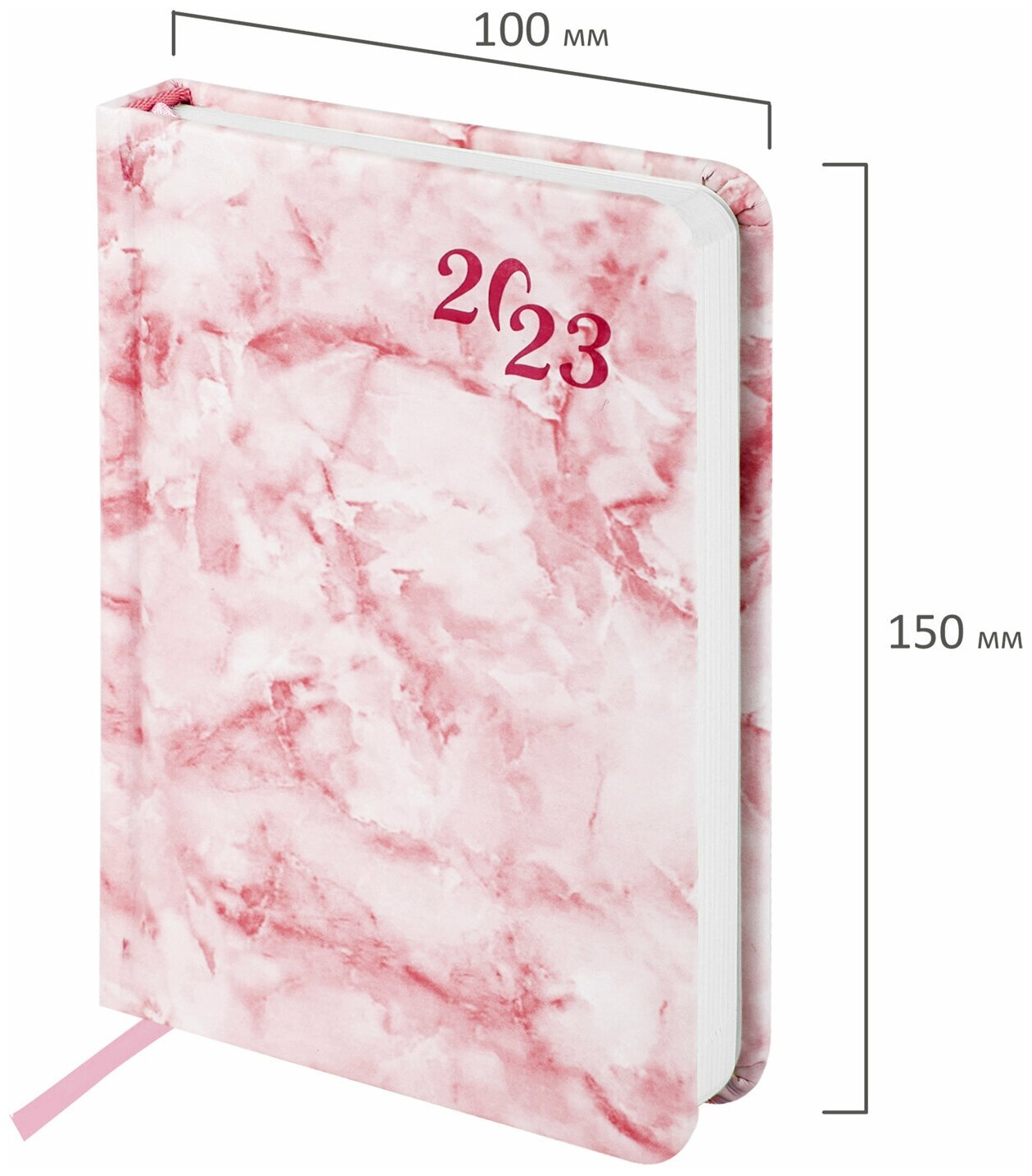 Ежедневник датированный 2023 малый формат 100х150 мм А6, B-B Marble, под кожу, розовый, 113917 интересное: