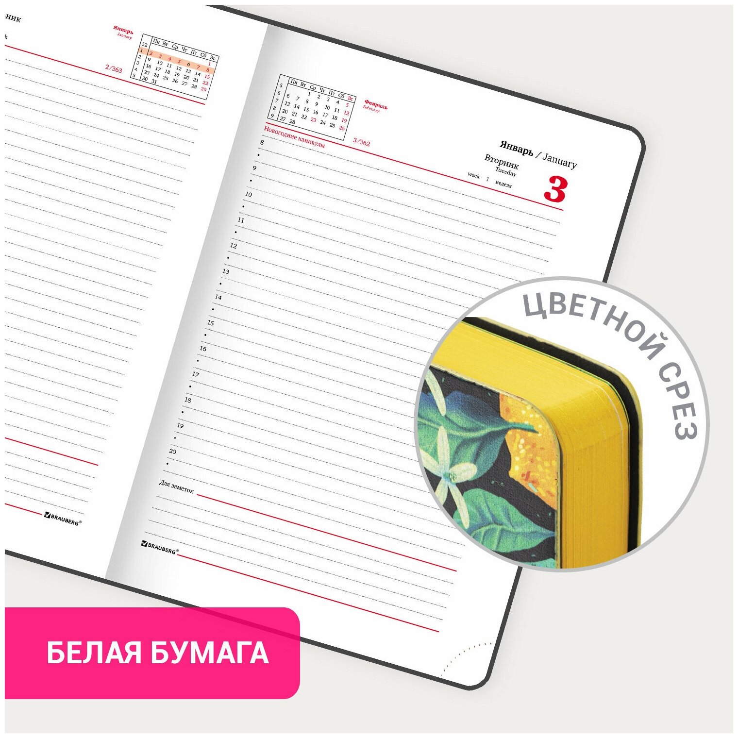 | Плюсы: | Качественная обложка, датированные страницы, закладка, качество бумаги |