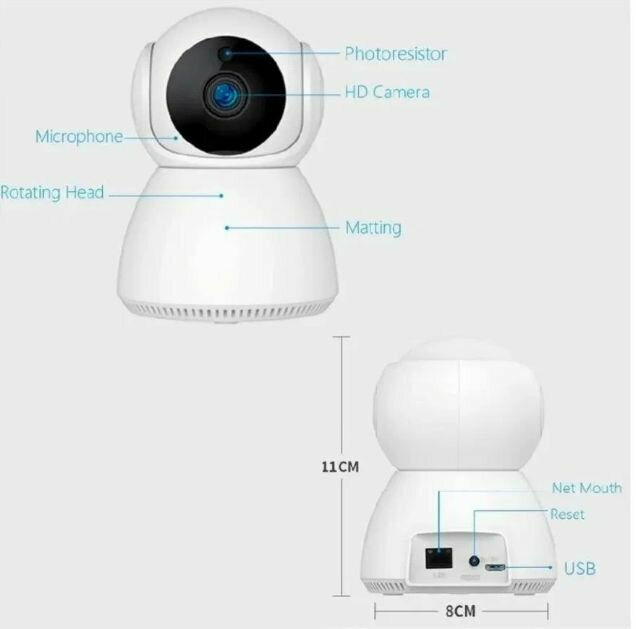 IP-камера видеонаблюдения Wi-Fi для дома с обзором 360 градусов белая