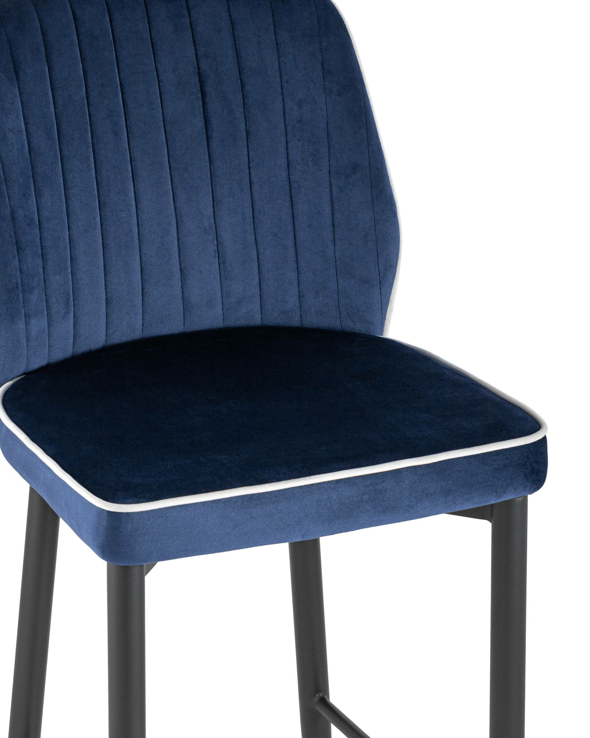 Купить Стул полубарный STOOL GROUP Лоренс синий обивка велюр ножки металл черный с подножкой