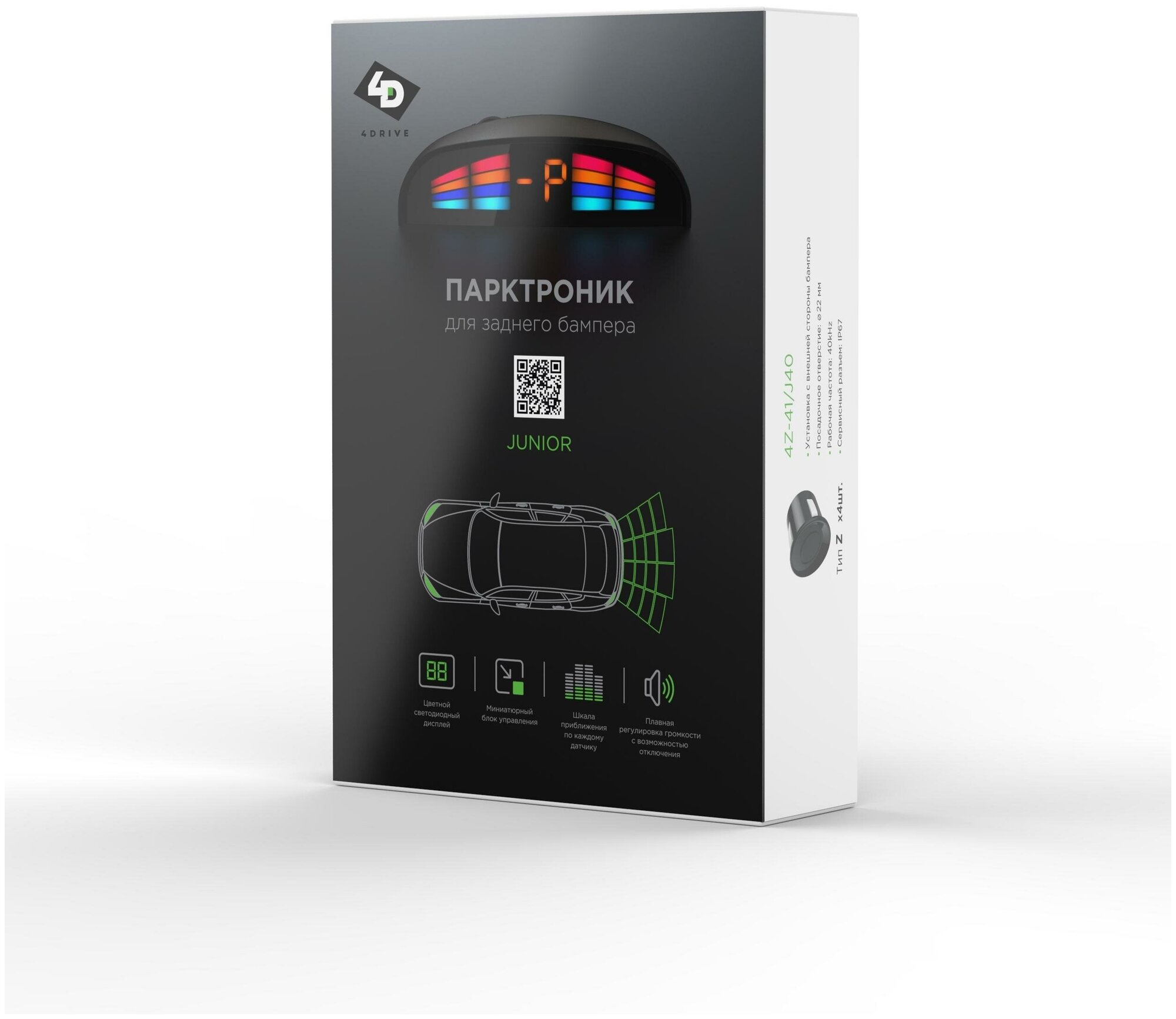 Парктроник 4Drive 4Z-41/J40 SL Junior с 4-мя датчиками серого цвета интересное: