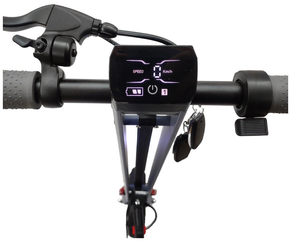 | Особенности электросамоката | дисплей / задний габарит/стоп-сигнал / индикатор заряда / индикатор скорости / передняя фара (фонарь) |