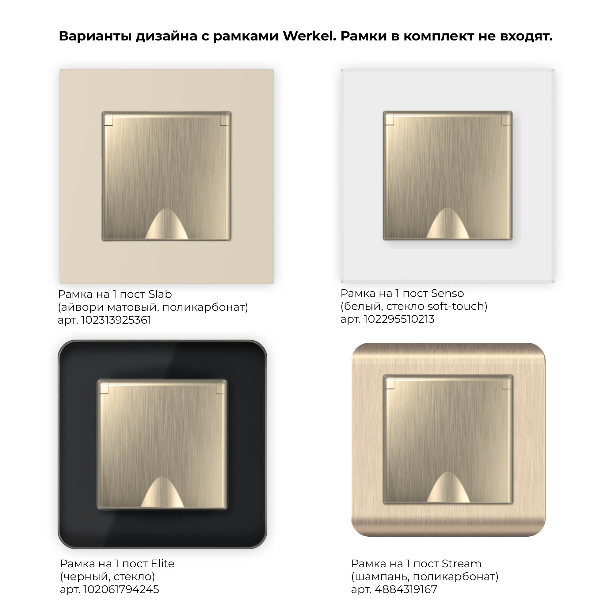 Купить Розетка влагозащищенная с заземлением с защитной крышкой и шторками Werkel шампань рифленый W1171210 4690389159770
