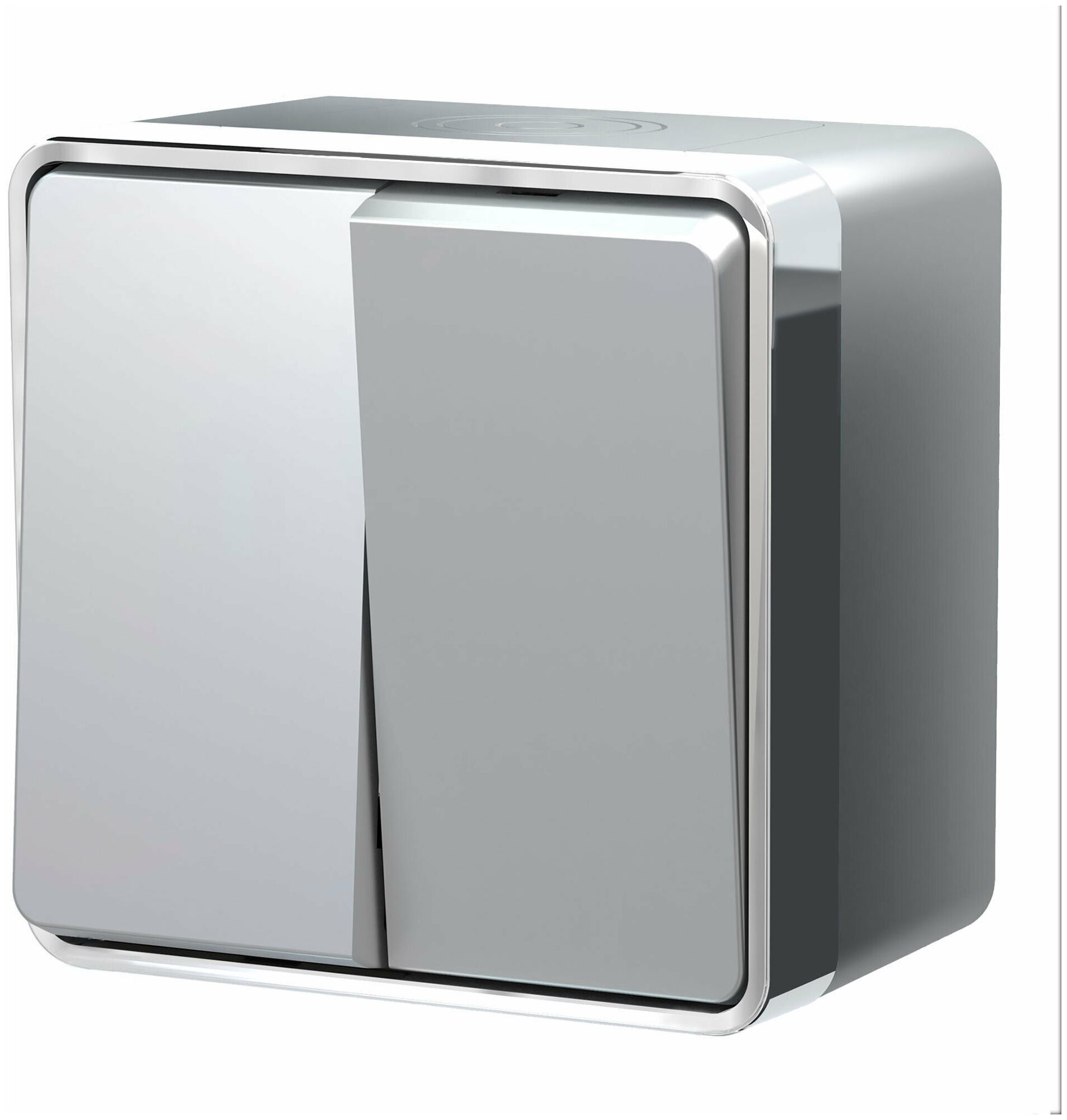 Накладной влагозащищенный выключатель двухклавишный Gallant Werkel W5020206 серебряный IP44