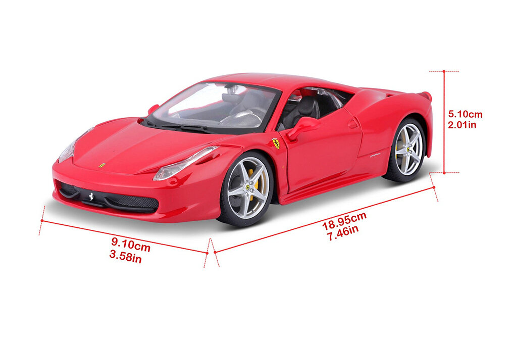 Купить Гоночная машина Bburago Ferrari 458 Italia (18-26003) 1:24, 18 см, красный