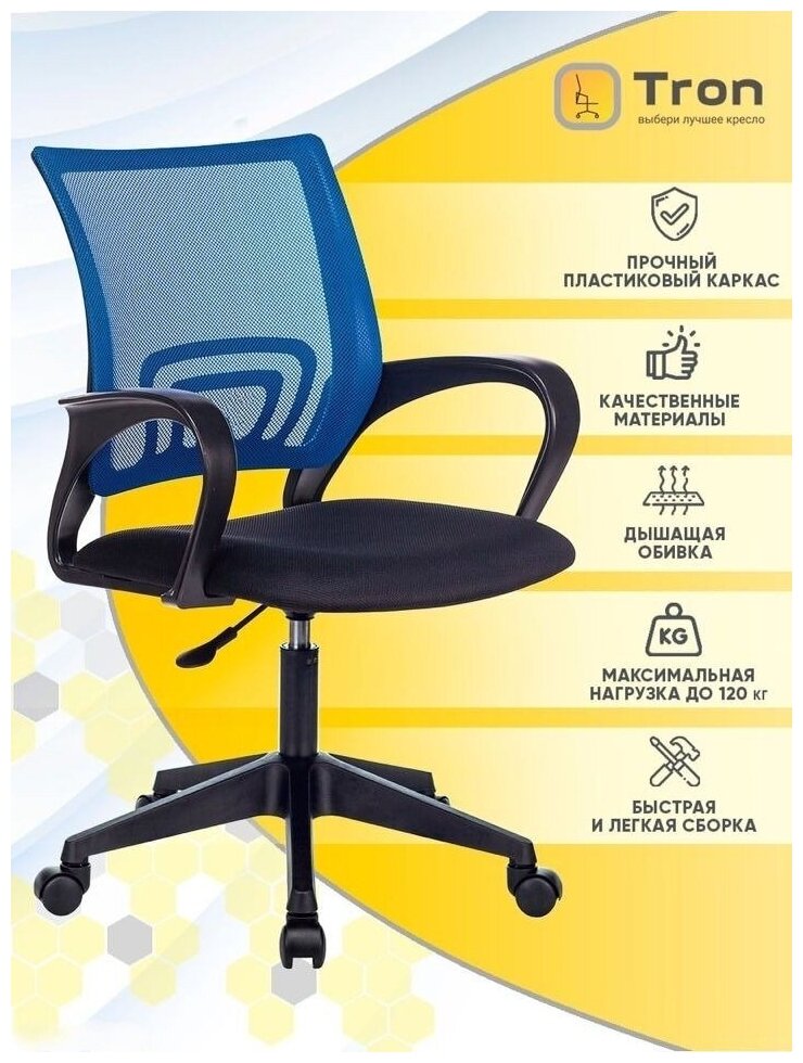 Кресло компьютерное, офисное Tron A1-695 сетка синяя Standard цвет: синий