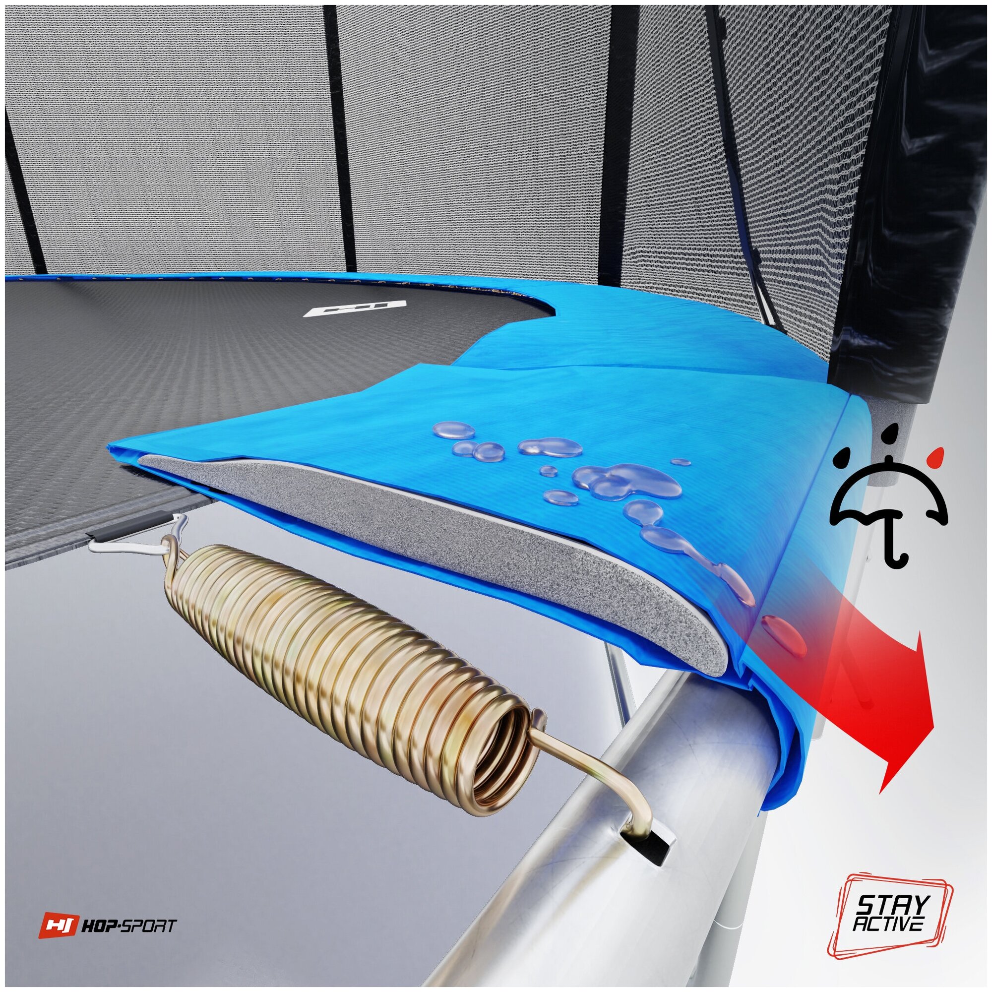 Батут Atlas Sport 312 см - 10ft BASIC (3 ноги) с внешней сеткой и лестницей BLUE интересное: