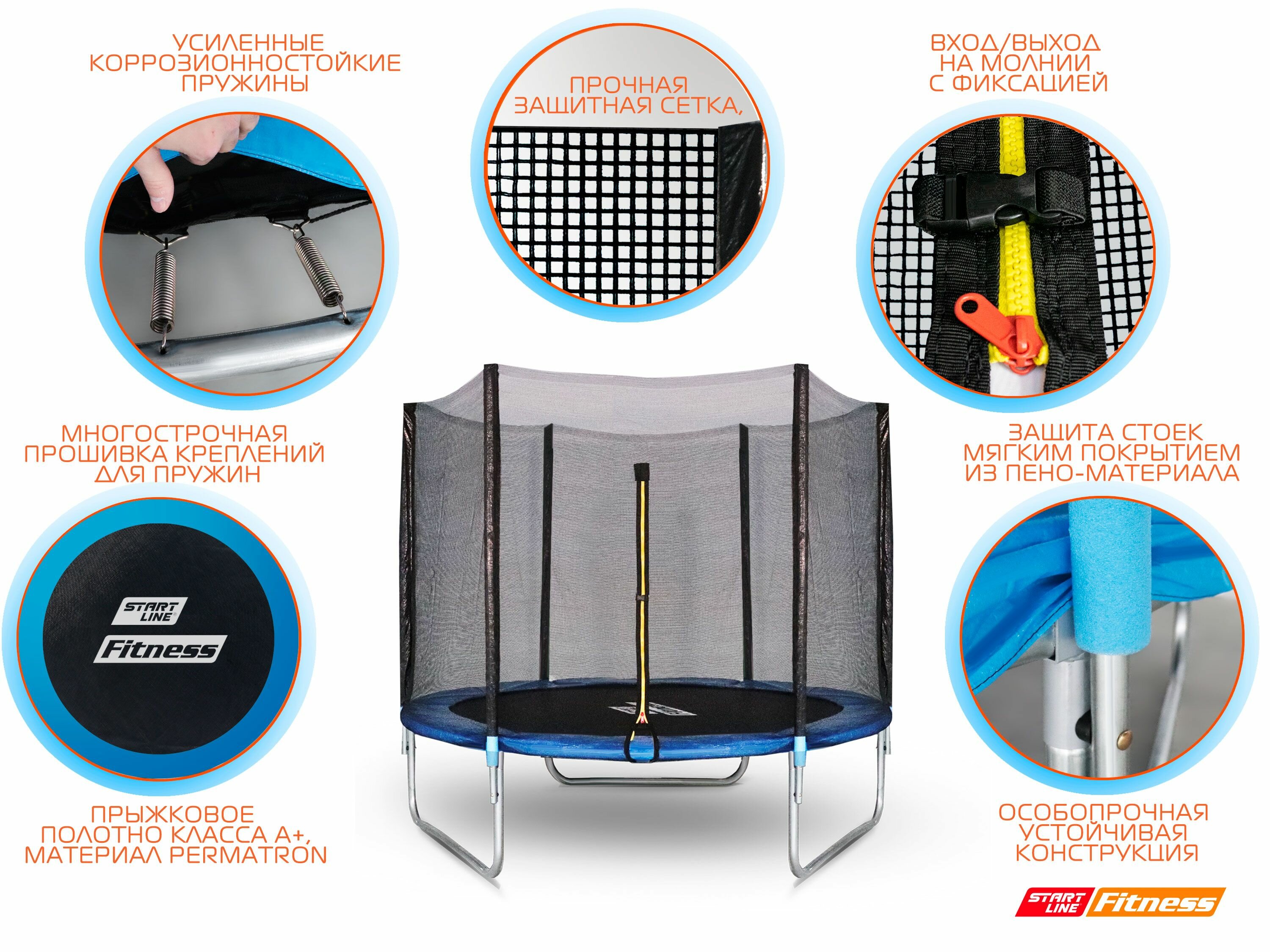 Батут каркасный Start Line Fitness, 6 футов, с внешней сеткой, до 100 кг. интересное: