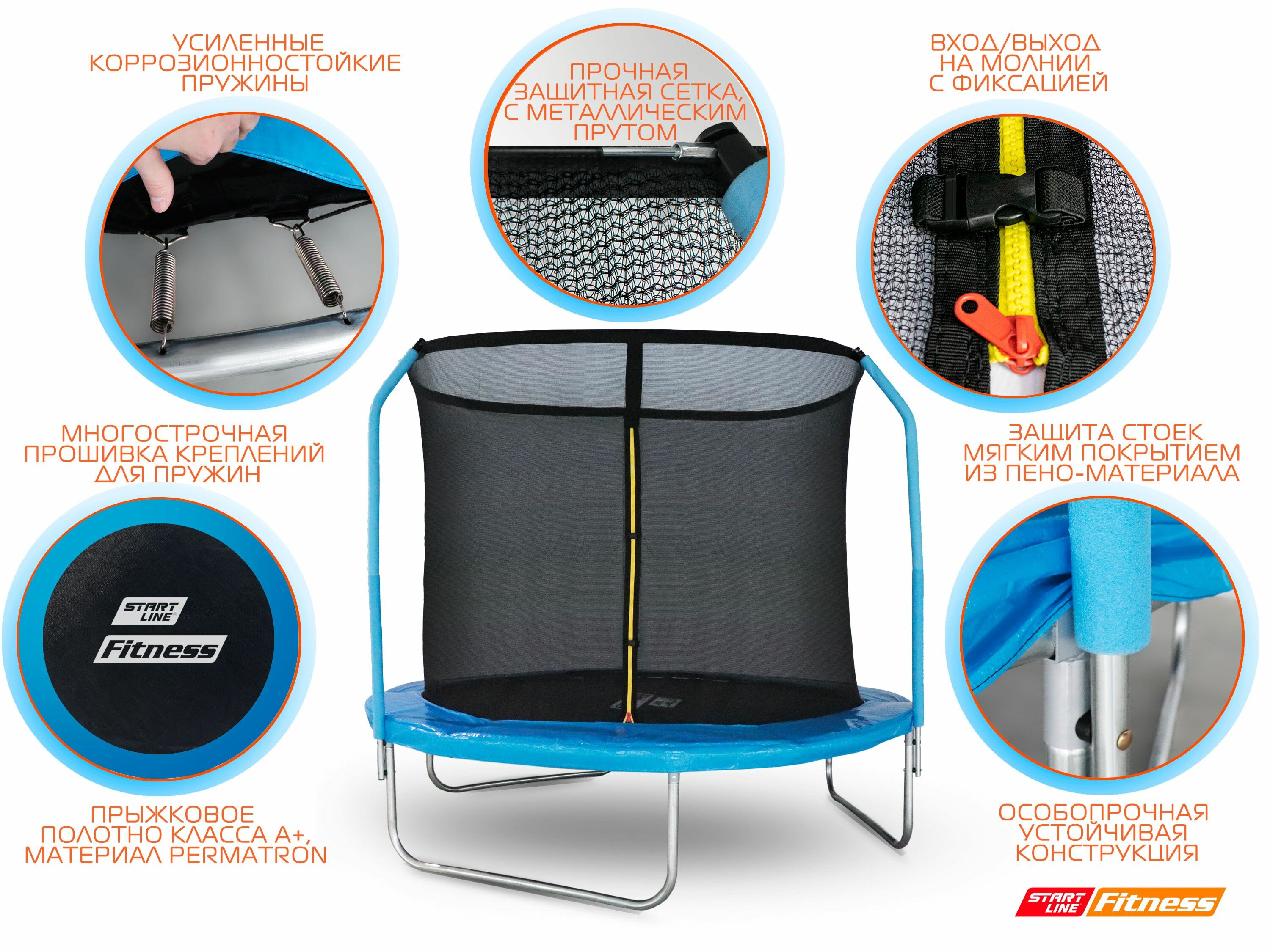 Батут каркасный Start Line Fitness, 6 футов, с внутренней сеткой и держателями, до 100 кг. интересное: