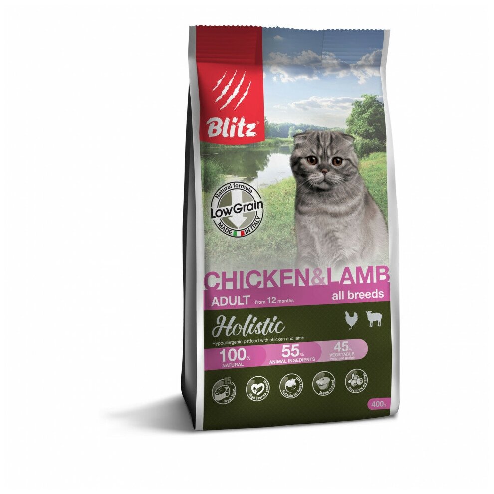 Купить Blitz Holistic Cat Adult сухой низкозерновой корм для взрослых кошек с курицей и ягненком - 400 г