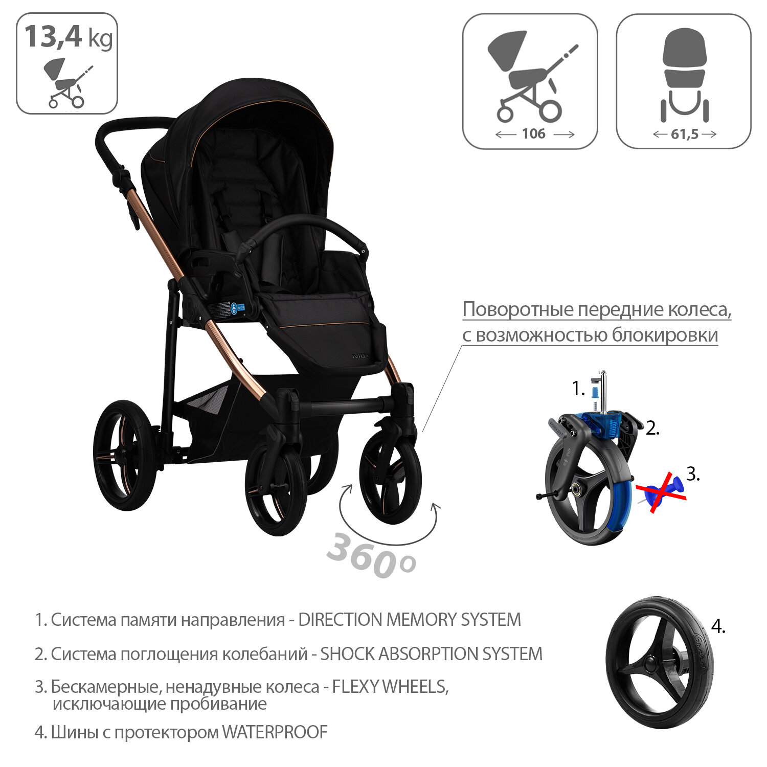 | Аксессуары в комплекте | бампер, дождевик, матрас, накидка на ноги, подстаканник |
