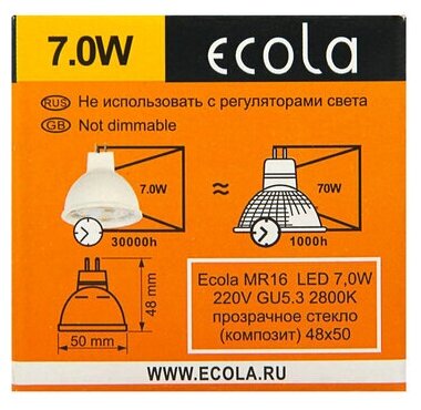 Ecola MR16 GU5.3 220V 7W 2800K 2K 48x50 прозр. пласт./алюм. Premium M2ZW70ELC (арт. 700625) интересное: