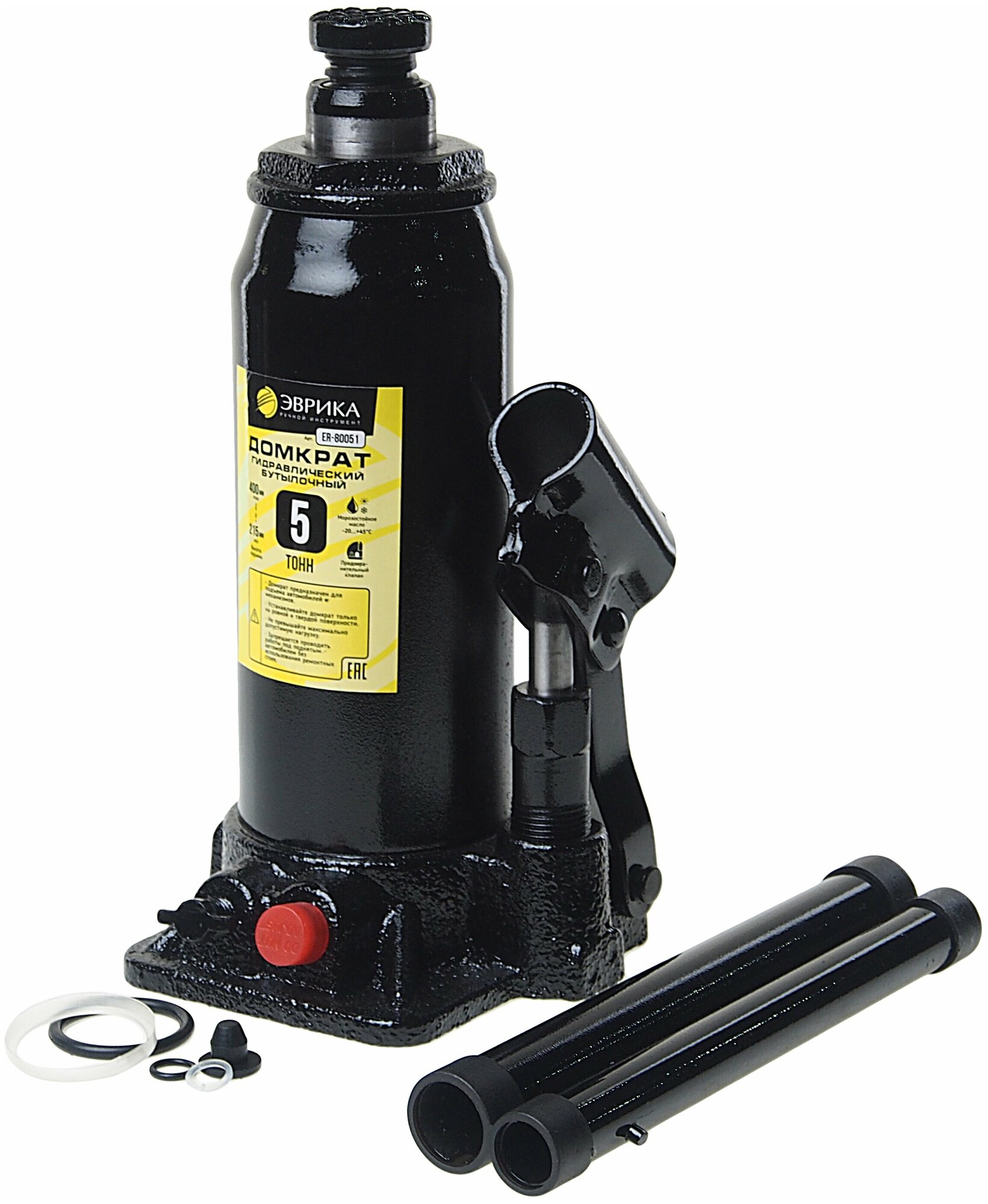 СохранитьДомкрат гидравлический ER-80051S бутылочный с клапаном 5т, ремкомплект (выс. подъема 215-400мм) в кейсе эврика интересное: