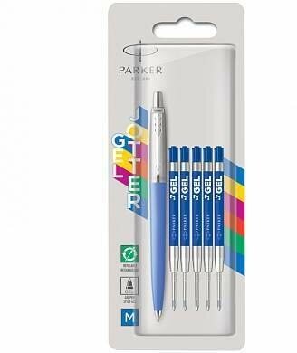 Набор: гелевая ручка Parker Jotter Original + синие гелевые стержни 5шт толщина линии (M - 0,7мм), блистер 2141251 интересное: