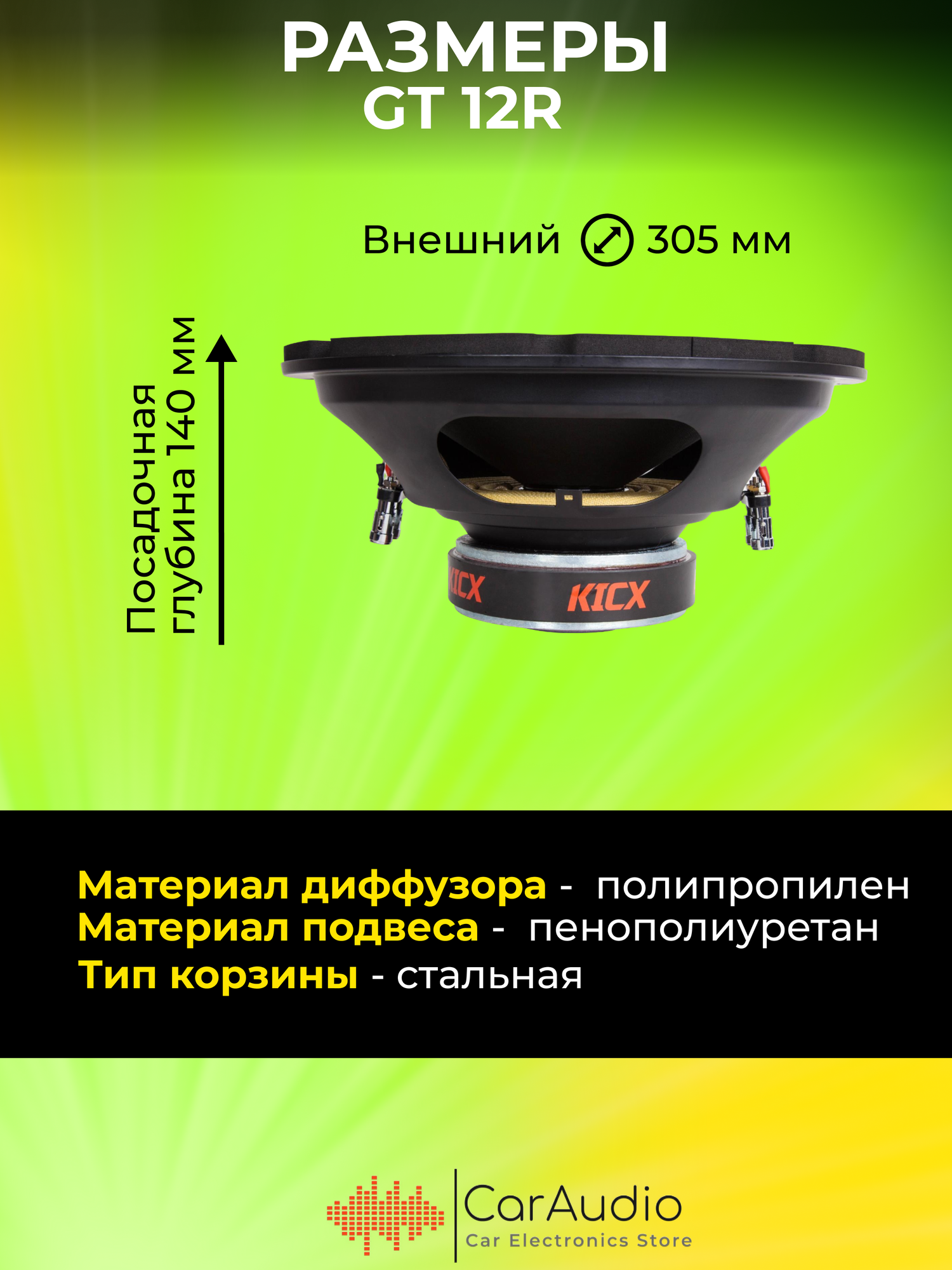 Автомобильный сабвуфер KICX GT-12R, 30см (12"), 300Вт RMS, 4+4Ом