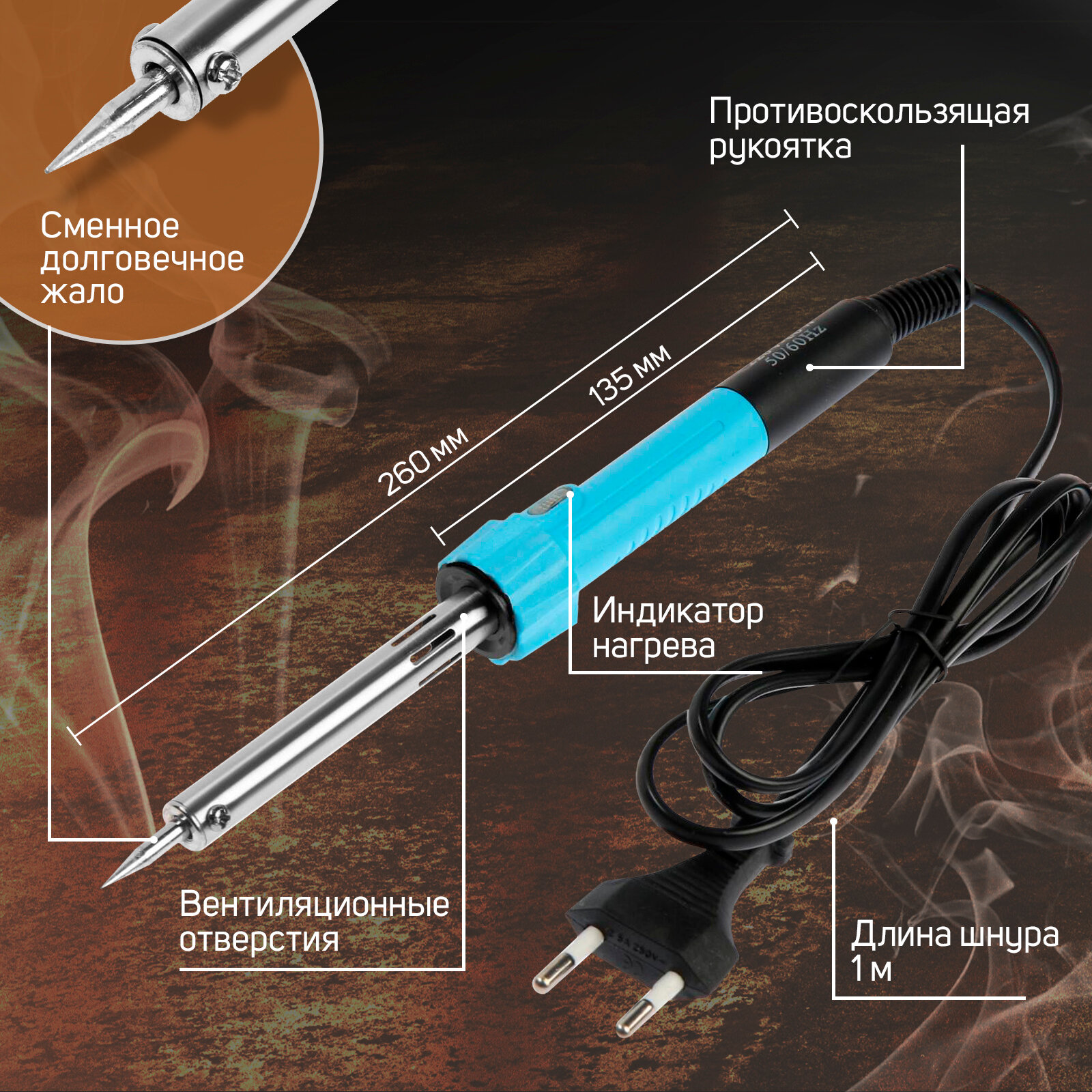 Паяльник, индикатор работы, долговечное жало, 80 Вт, 220 В
