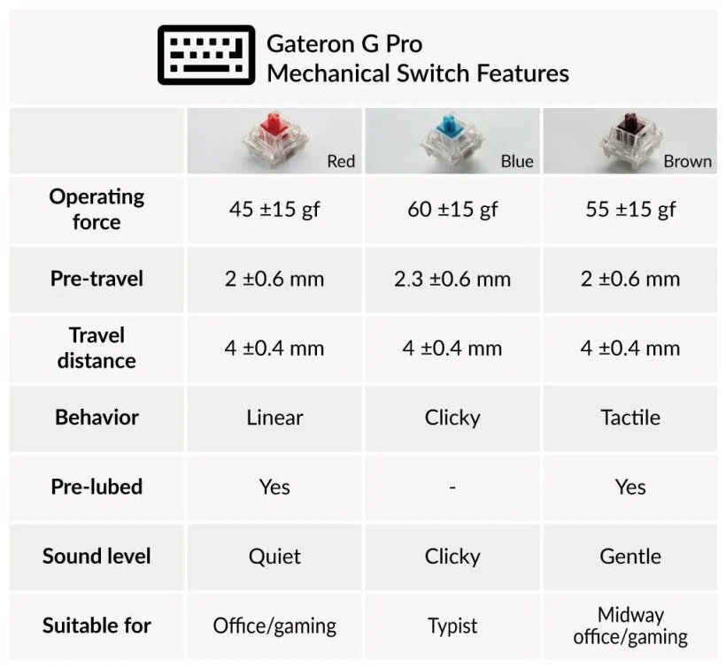 | Тип механических переключателей | Gateron Blue |