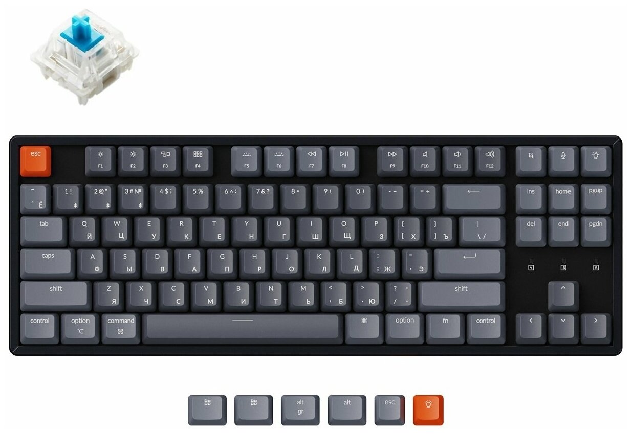 Беспроводная механическая клавиатура Keychron K8, TKL, алюминиевый корпус, White LED подсветка, Gateron Blue Switch интересное:
