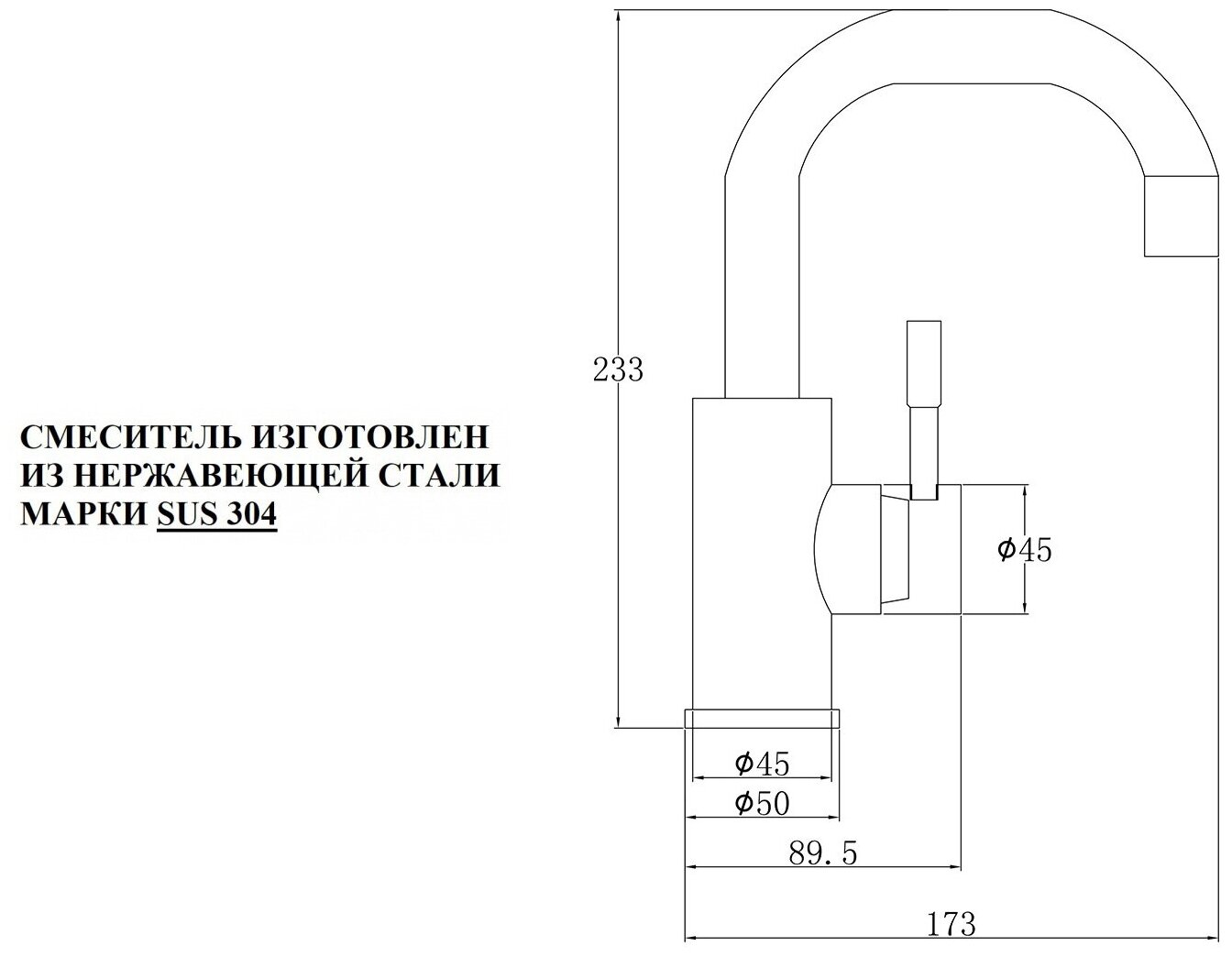 | Длина излива | 173 мм |