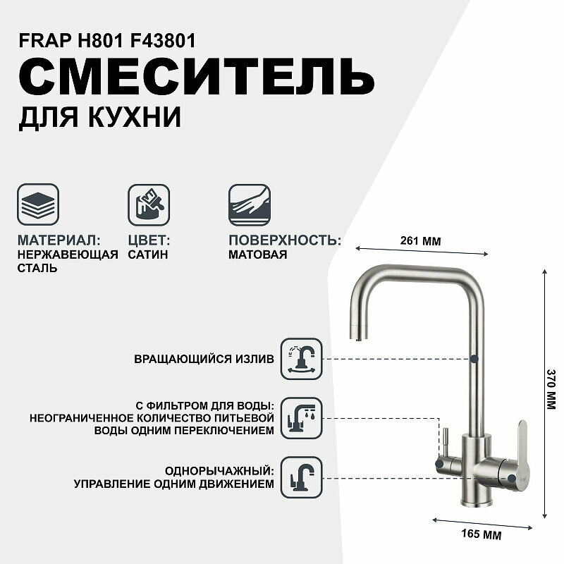 Смеситель для кухни (мойки) Frap H801 F43801 серебристый интересное: