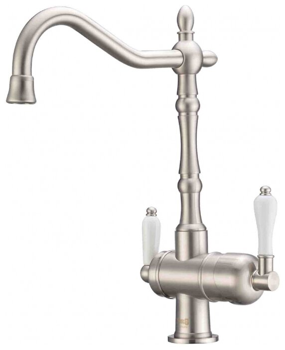 Смеситель для кухни под фильтр ZorG ZR 326 YF SATIN, сатин никель матовый, ретро, ручки керамика, высокий, премиум