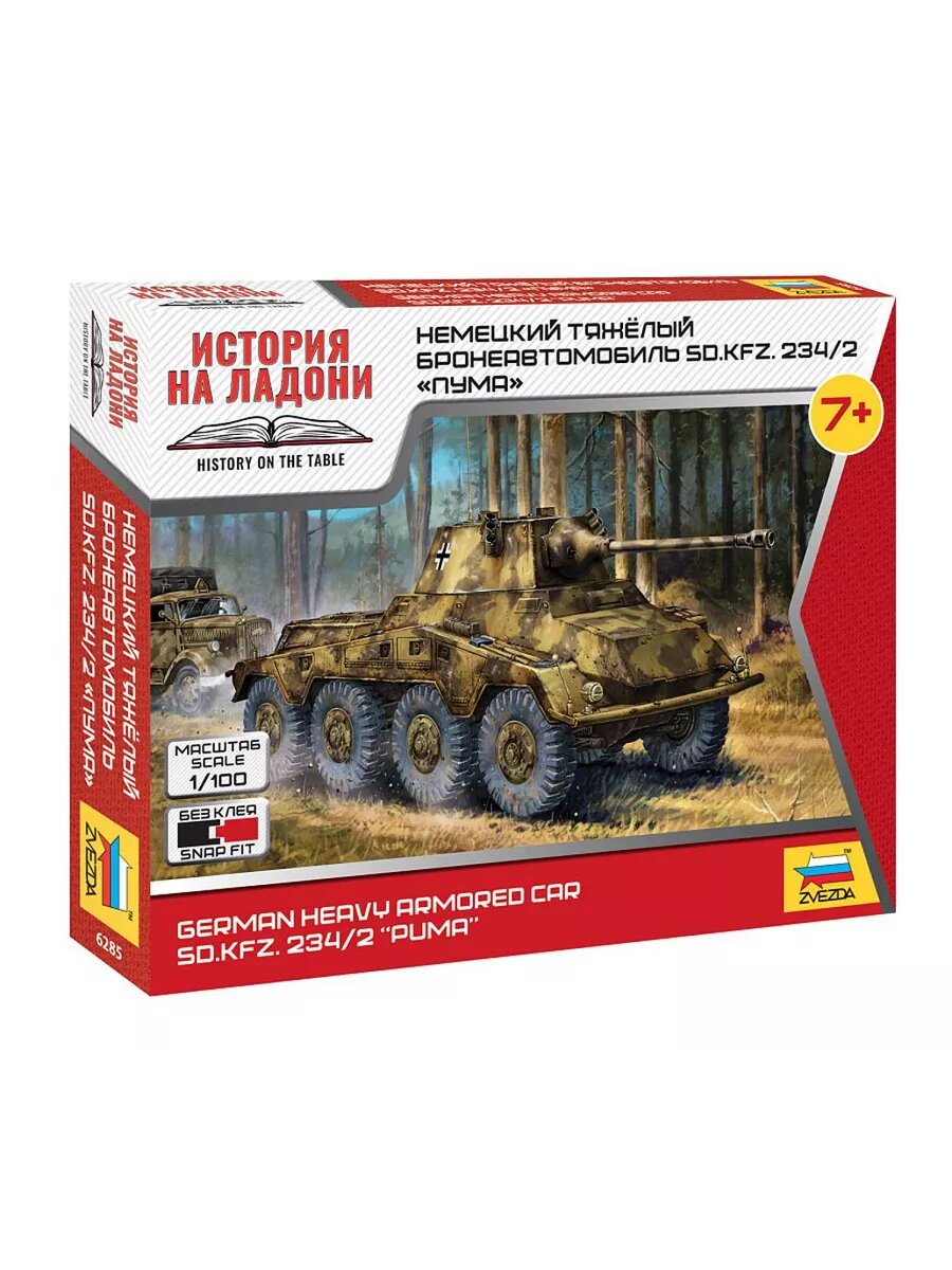 ZVEZDA 6285 Модель для сборки без клея Немецкий бронеавтомобиль SD.KFZ.234/2 «Пума» 6285 Немецкий бронеавтомобиль SD.KFZ.234/2 «Пума» 1/100