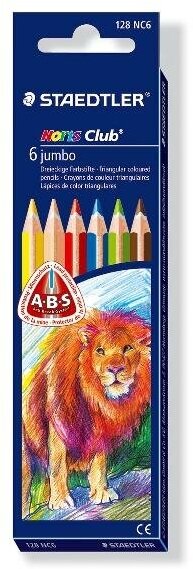 Купить Карандаши цветные утолщенные STAEDTLER "Noris Club", 6 цветов, трехгранные, 4 мм, европодвес, 128 NC6
