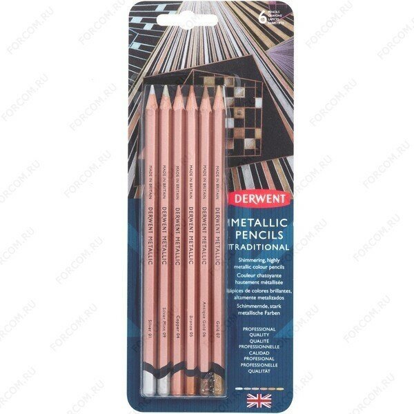 Купить Цветные карандаши Derwent Набор цветных карандашей Metallic Tradition, 6цв., блистер, Derwent