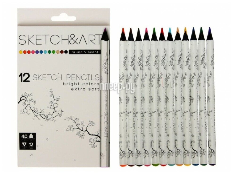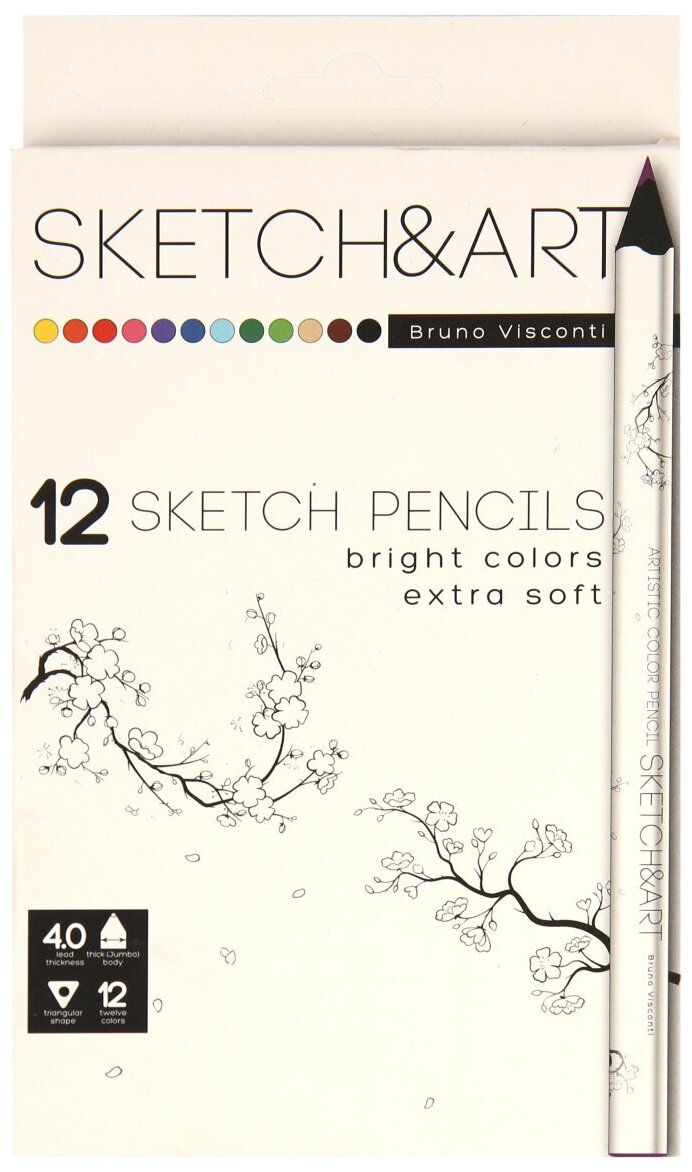 Купить Карандаши цветные 12 цветов Sketch&Art (L=175мм, d=4мм, 3гр) утолщенные