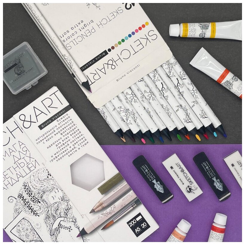 Карандаши цветные 12 цветов Sketch&Art (L=175мм, d=4мм, 3гр) утолщенные интересное: