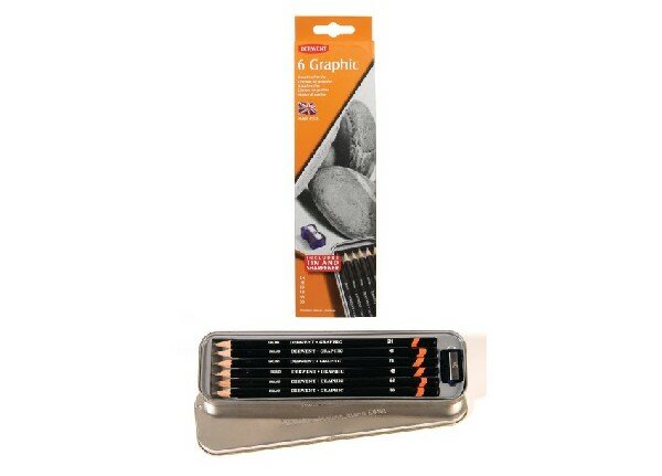 Купить Набор чернографитовых карандашей Derwent Graphic 6 шт. с точилкой в металлической упаковке