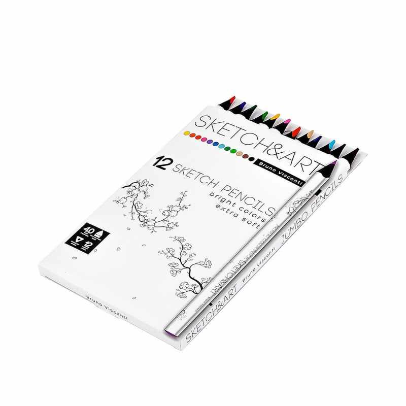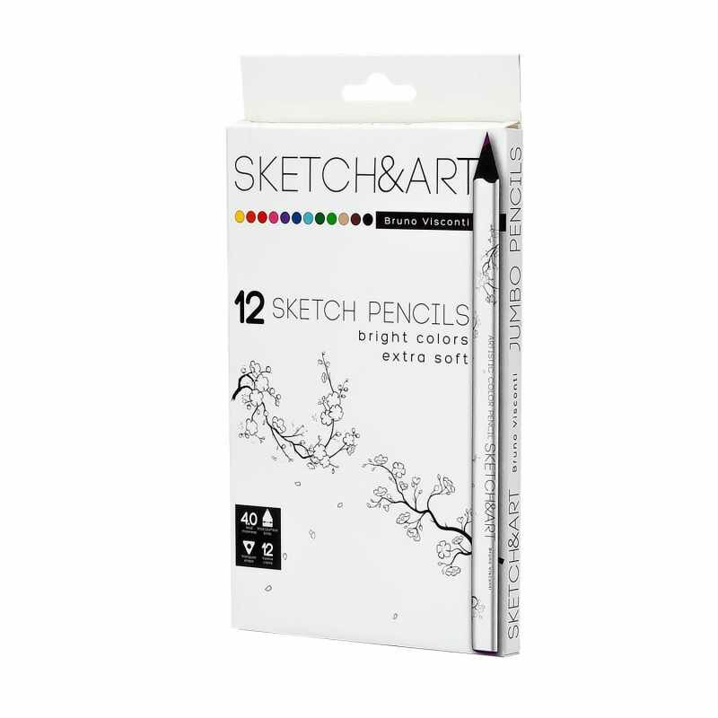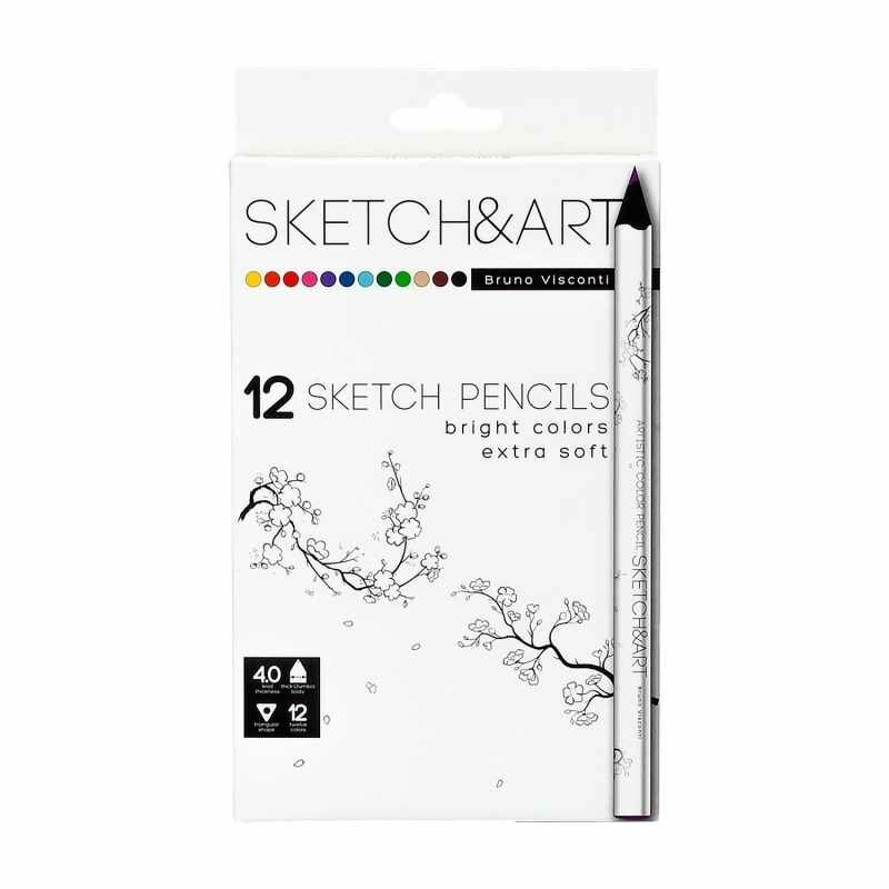 Карандаши цветные 12 цветов Sketch&Art (L=175мм, d=4мм, 3гр) утолщенные