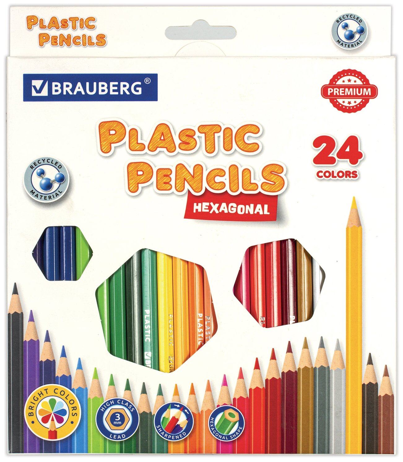 Купить Карандаши цветные классические мягкие, 24 ярких цвета, BRAUBERG PREMIUM, комплект, 880547