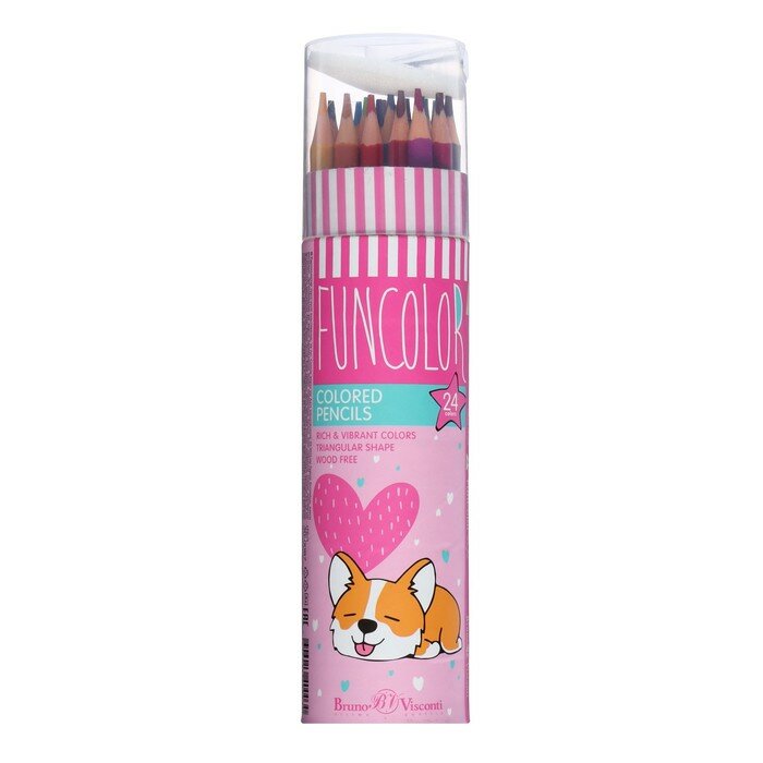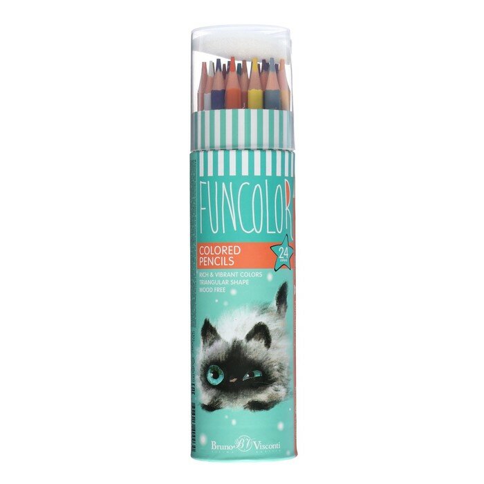 BrunoVisconti Карандаши цветные 24 цвета Funcolor пластиковые, в картонной тубе, микс