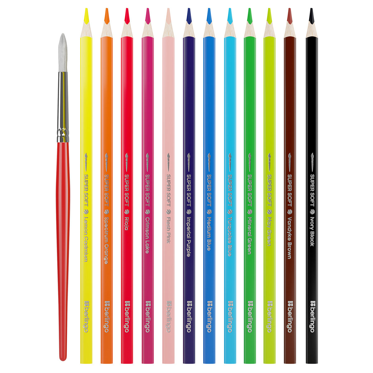 Карандаши акварельные BERLINGO "SuperSoft. Рыбки", 12цв.+кисть, трехгран., заточен., картон, европод