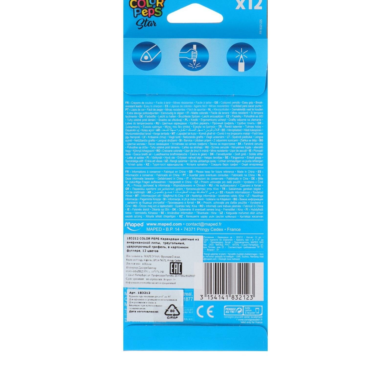 Карандаши трёхгранные 12 цветов, Maped Color Peps, европодвес интересное: