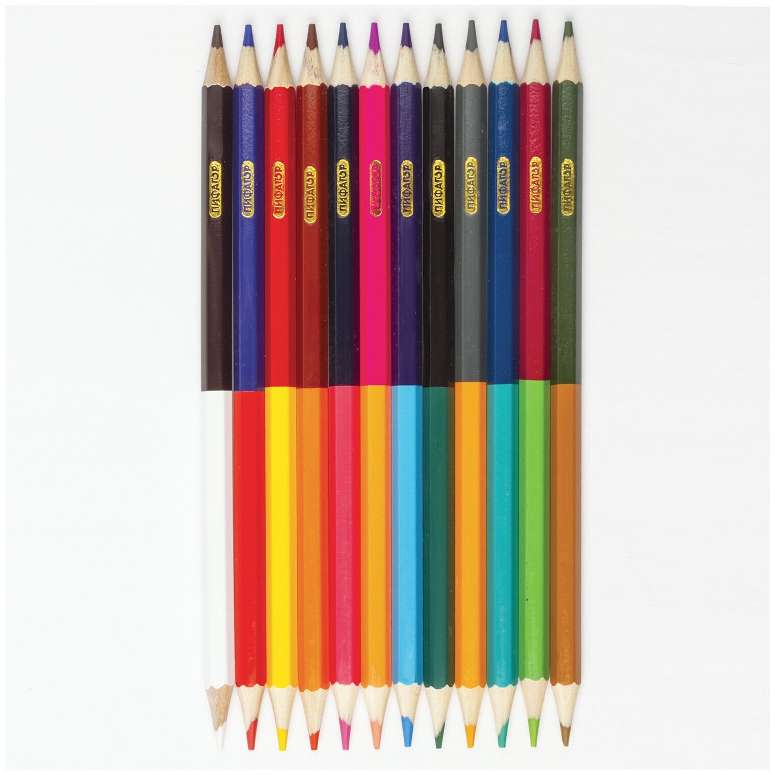 Купить Карандаши двусторонние пифагор, 12 штук, 24 цвета, заточенные, картонная упаковка, 180244